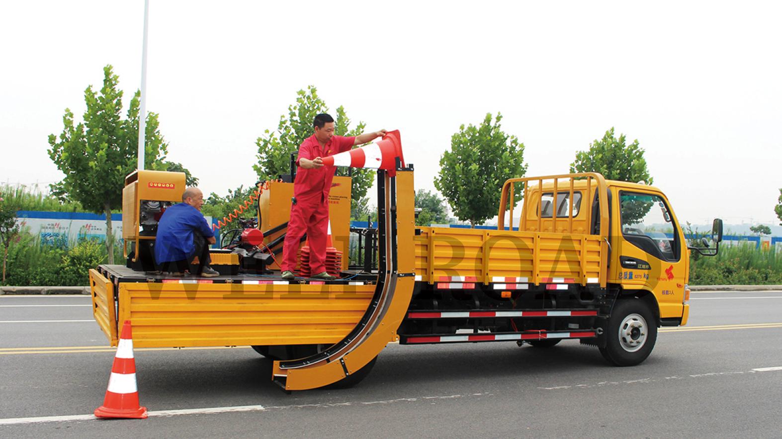 車載式交通錐自動收放機可直接裝載于用戶自有的輕型載貨車輛上,可根據施工需要隨時拆裝,發揮運輸車輛的使用效率。該類型機械多用于允許運輸車輛搭載施工裝置進行施工的國家或地區。
